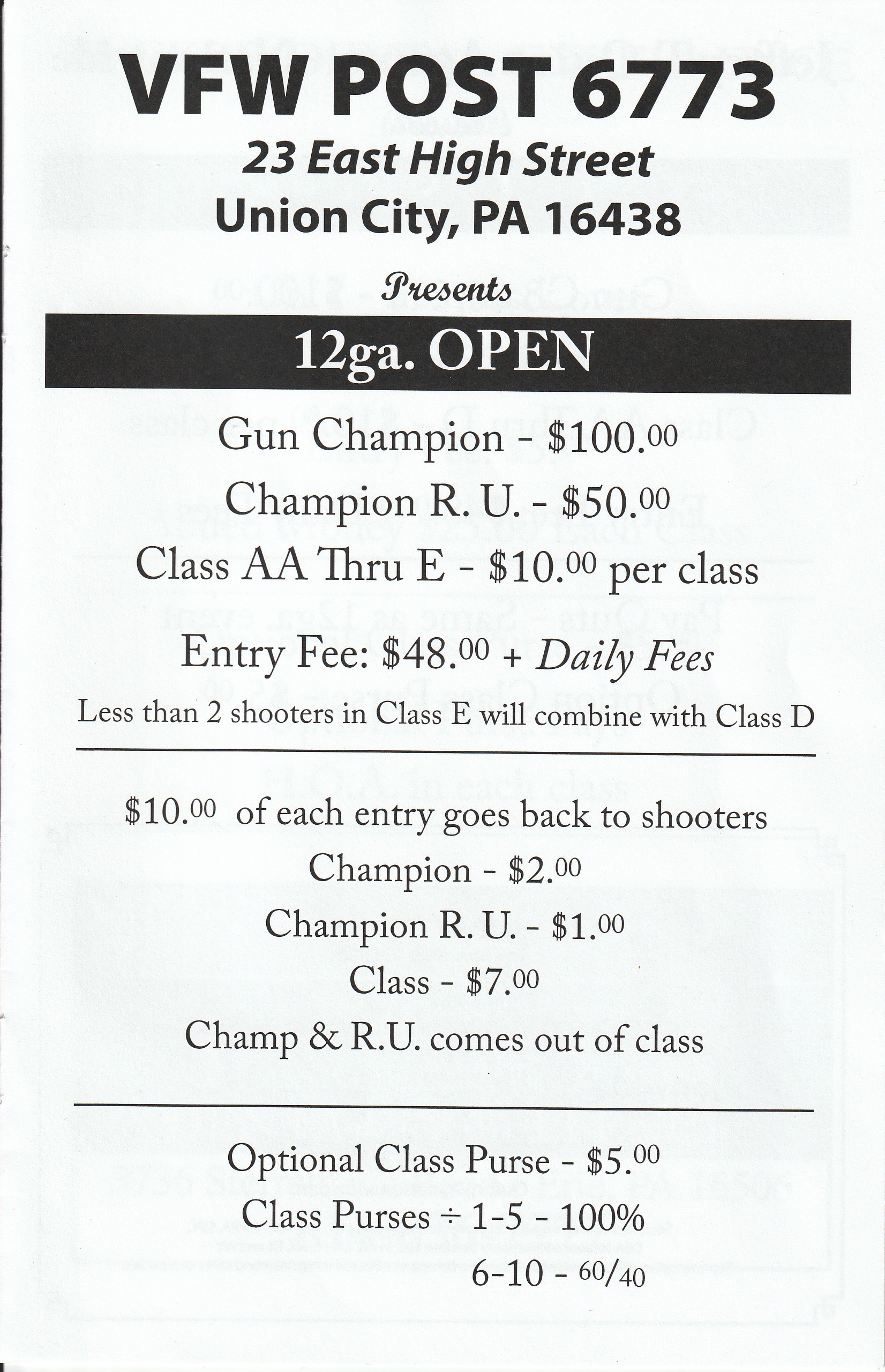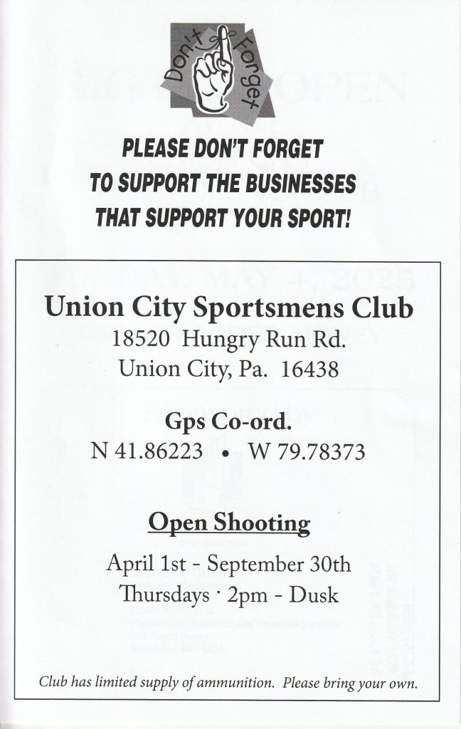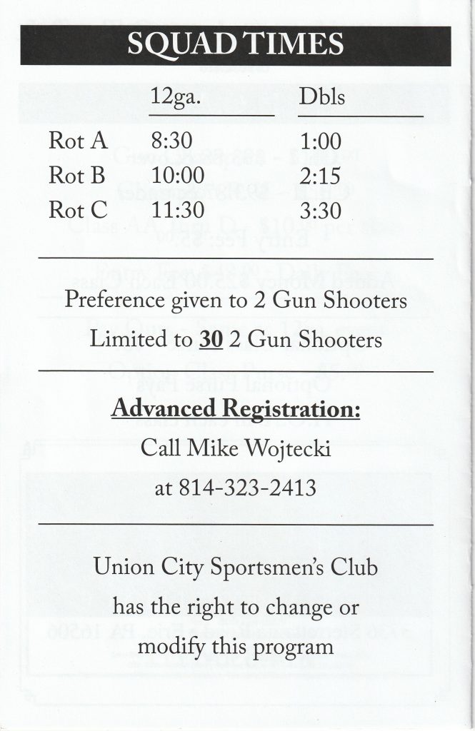Contact Mike Wojtecki at 814-323-2413 to sign up and reserve your spot. 30 shooters max. 4 gun shooters are given preference for the Fish Fry.